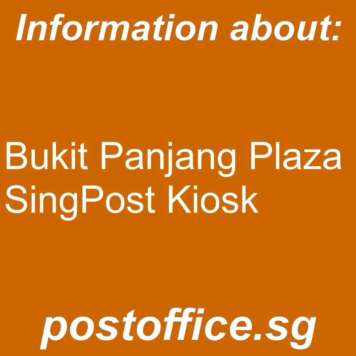 - Branch name: Bukit Panjang Plaza SingPost Kiosk