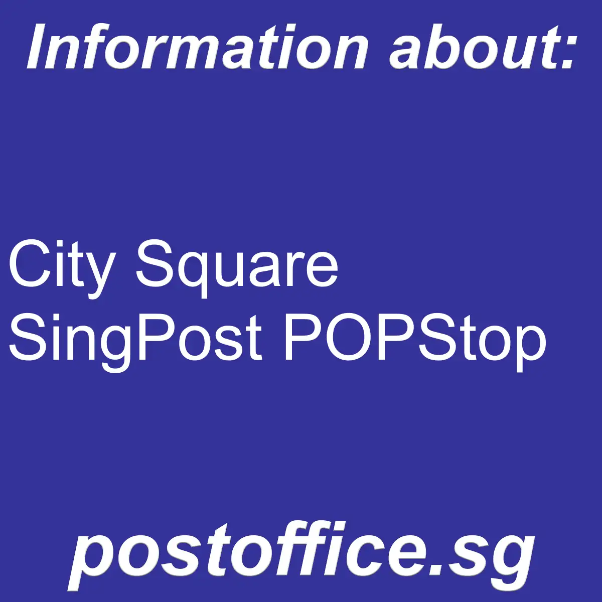 City Square SingPost POPStop- here are the opening hours and other main details of the Singapore Post Office branch City Square SingPost POPStop.