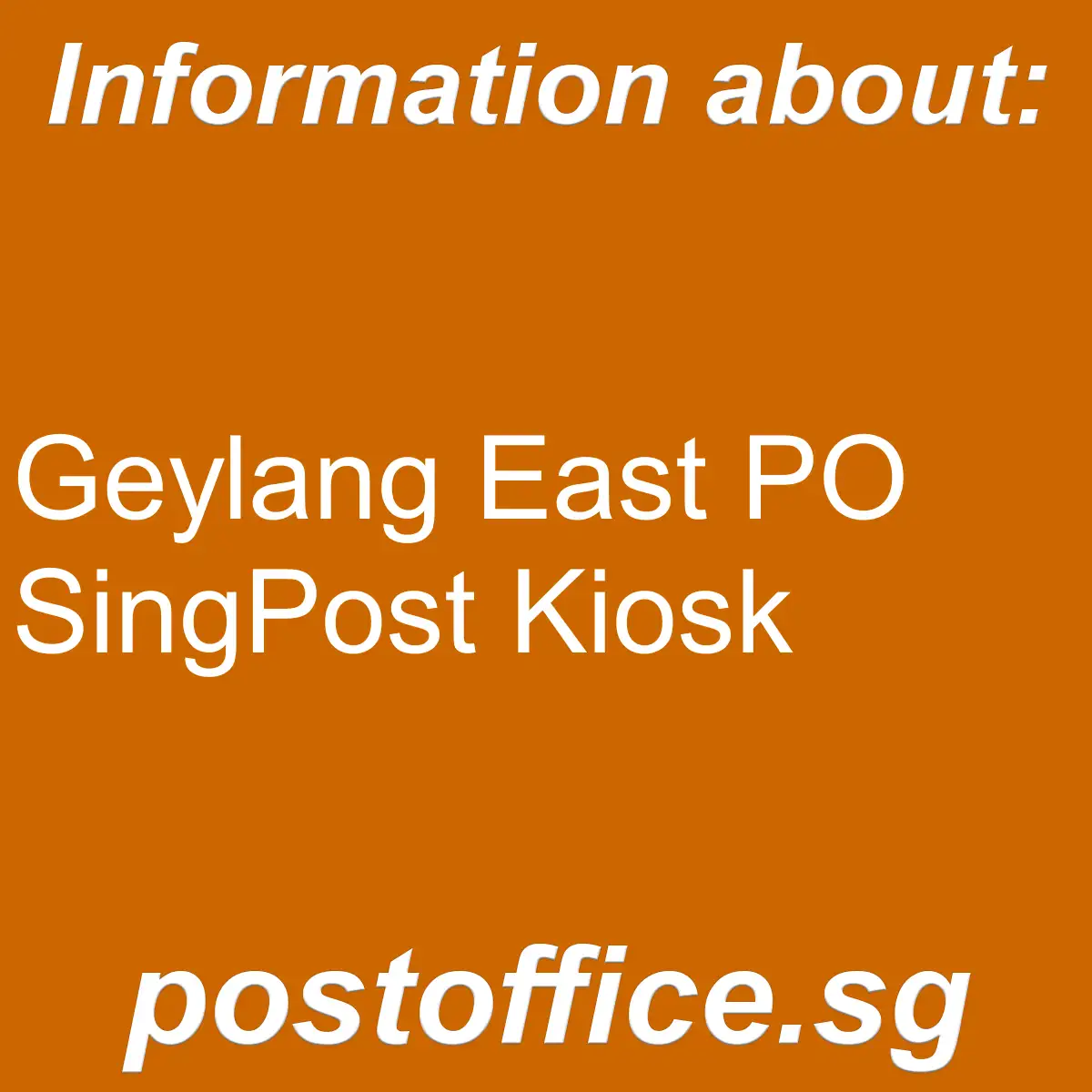 • Branch name: Geylang East PO SingPost Kiosk