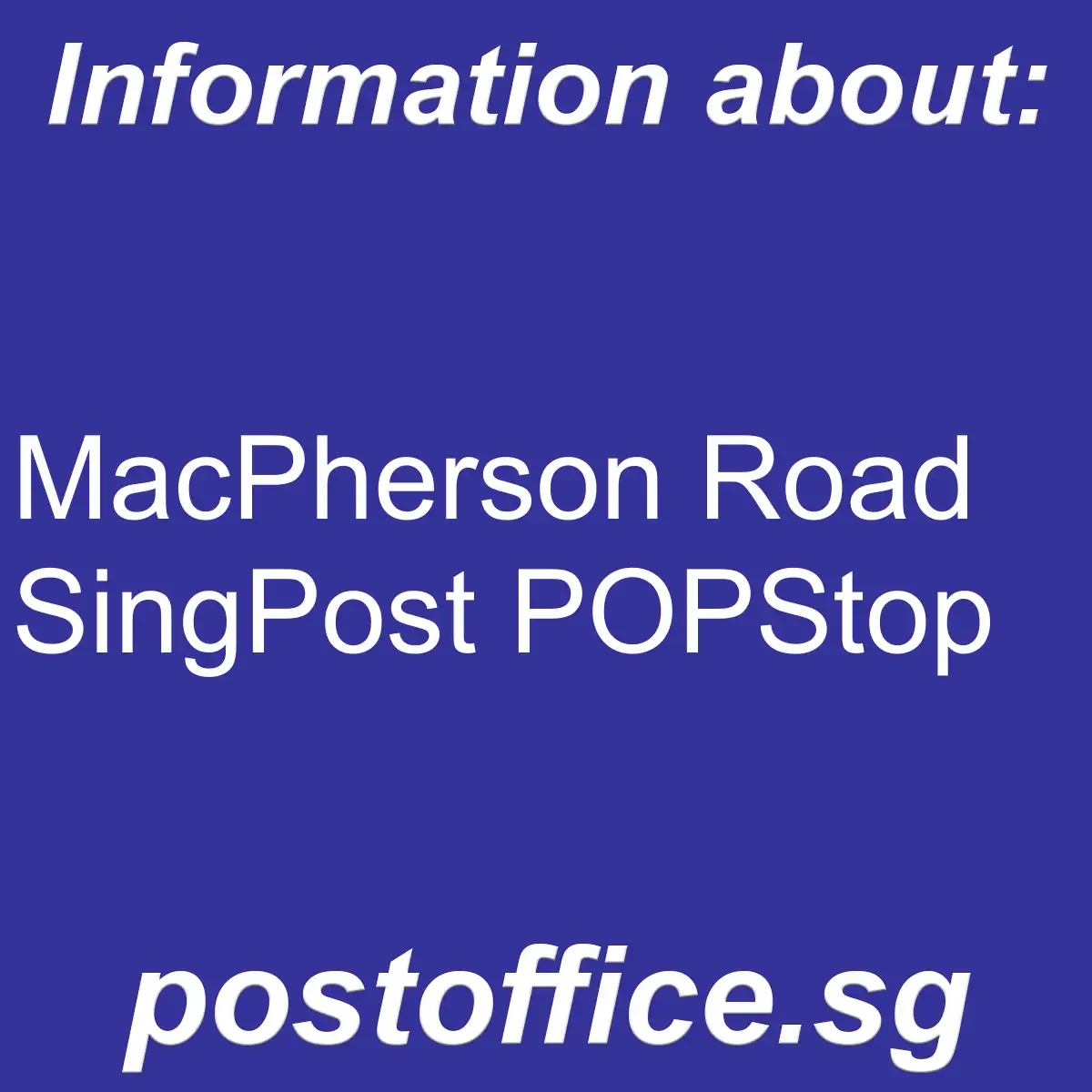 MacPherson Road SingPost POPStop- here are the opening hours and other main details of the Singapore Post Office branch MacPherson Road SingPost POPStop.