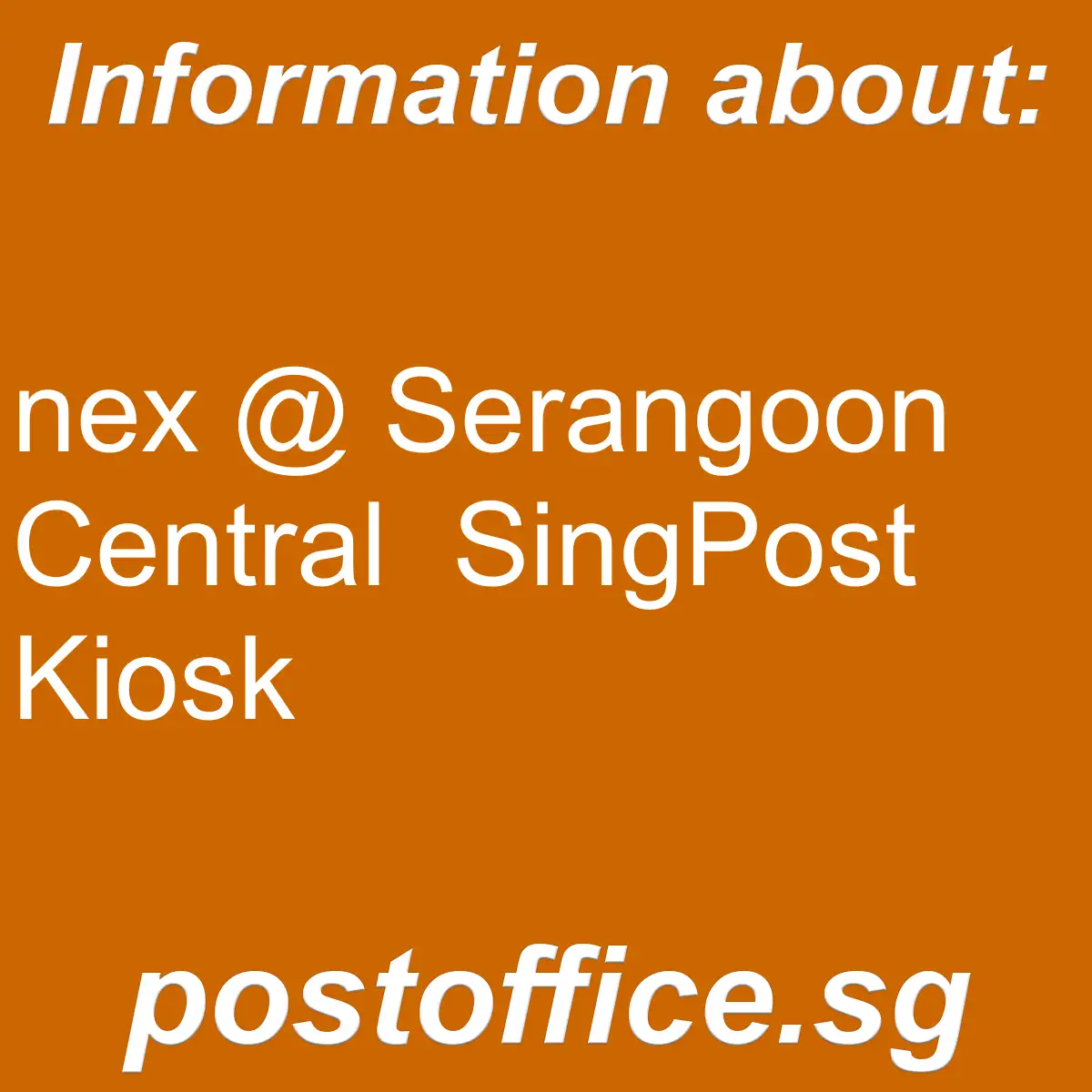 - Branch name: nex @ Serangoon Central SingPost Kiosk
