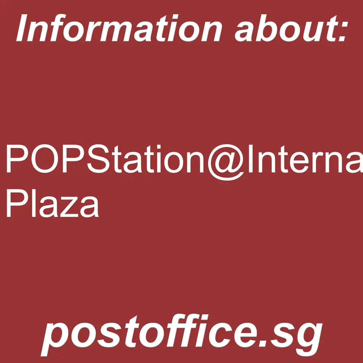 POPStation@International Plaza- here are the opening hours and other main details of the Singapore Post Office branch POPStation@International Plaza.