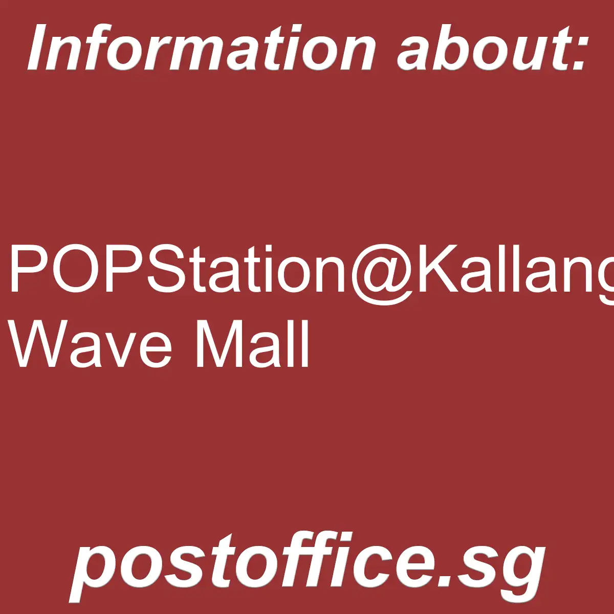 POPStation@Kallang Wave Mall- here are the opening hours and other main details of the Singapore Post Office branch POPStation@Kallang Wave Mall.