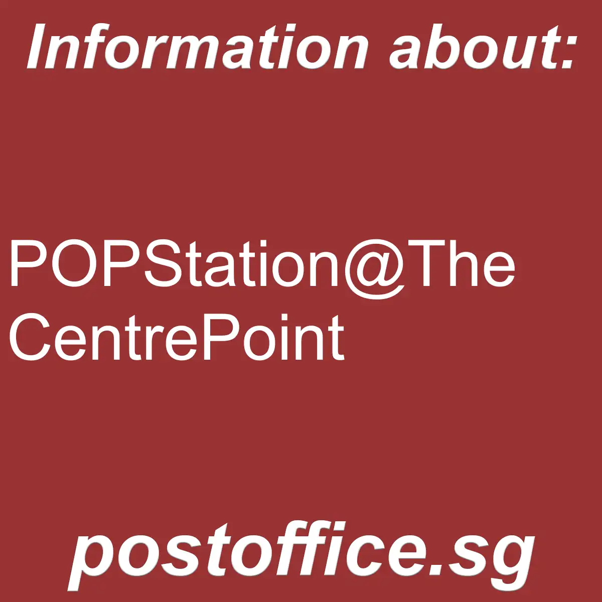 POPStation@The CentrePoint- here are the opening hours and other main details of the Singapore Post Office branch POPStation@The CentrePoint.