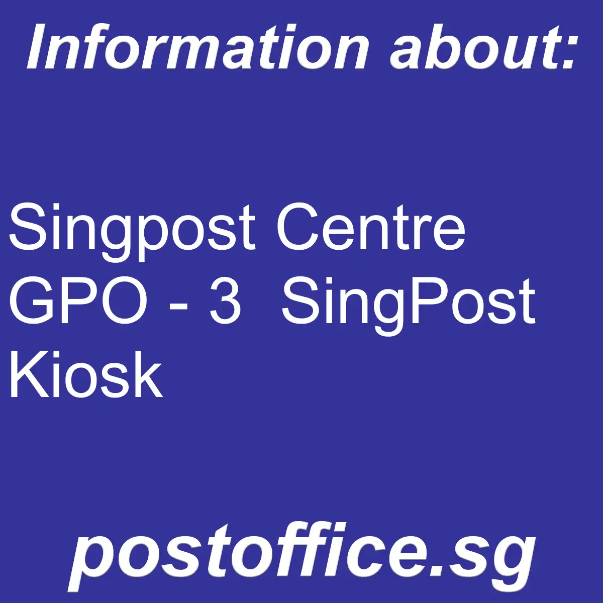 Singpost Centre GPO – 3 SingPost Kiosk- here are the opening hours and other main details of the Singapore Post Office branch Singpost Centre GPO – 3 SingPost Kiosk.