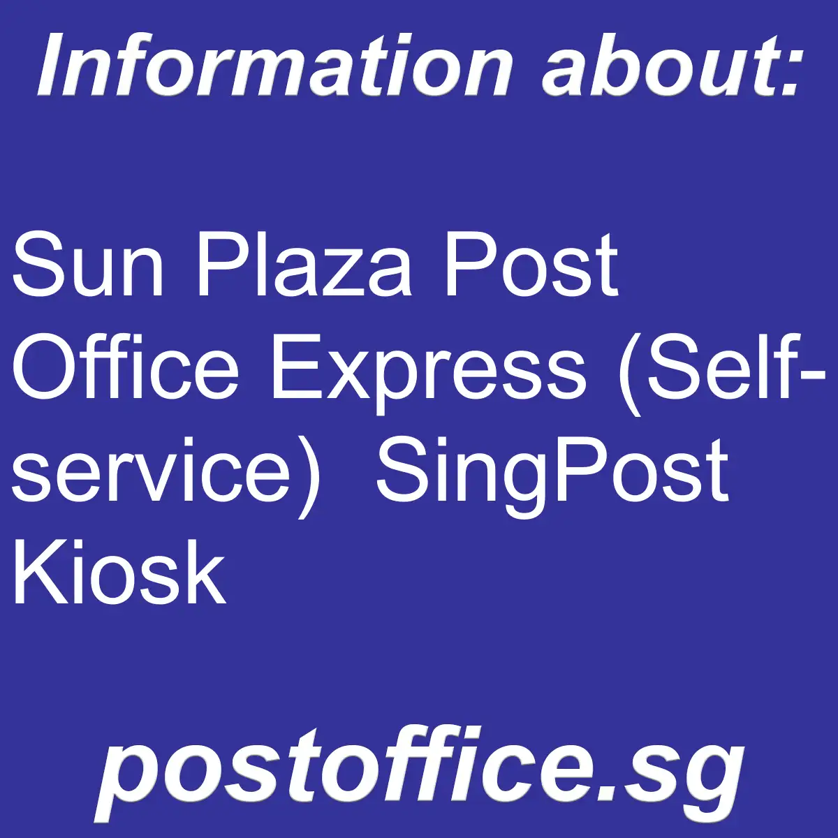 - Branch name: Sun Plaza Post Office Express (Self-service) SingPost Kiosk