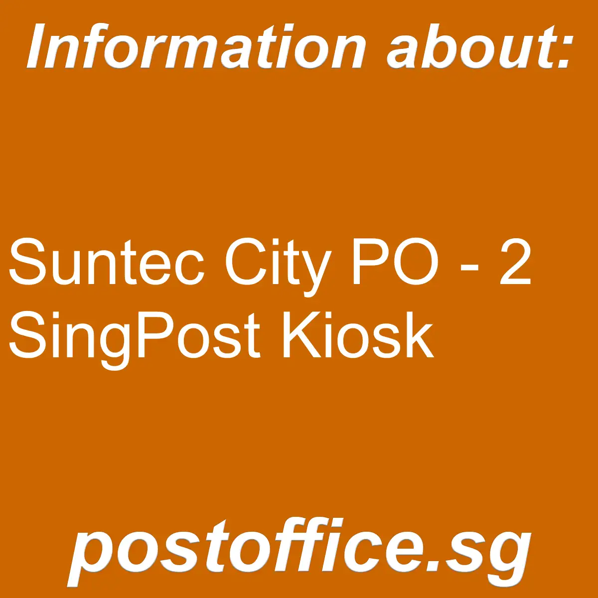 - Branch name: Suntec City PO – 2 SingPost Kiosk