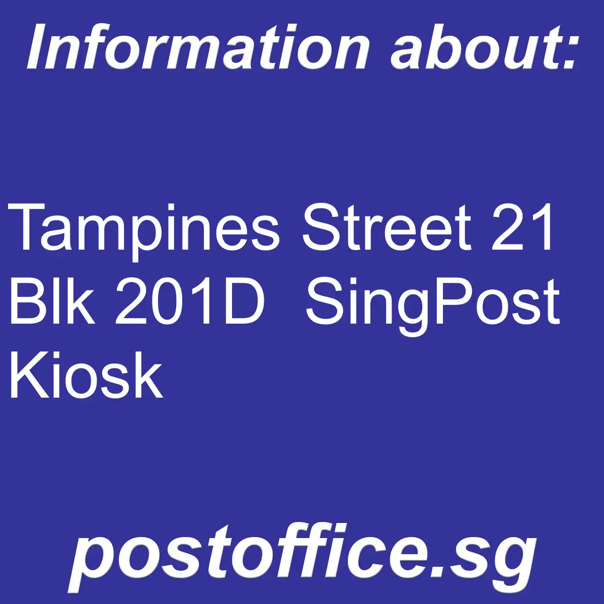 - Branch name: Tampines Street 21 Blk 201D SingPost Kiosk