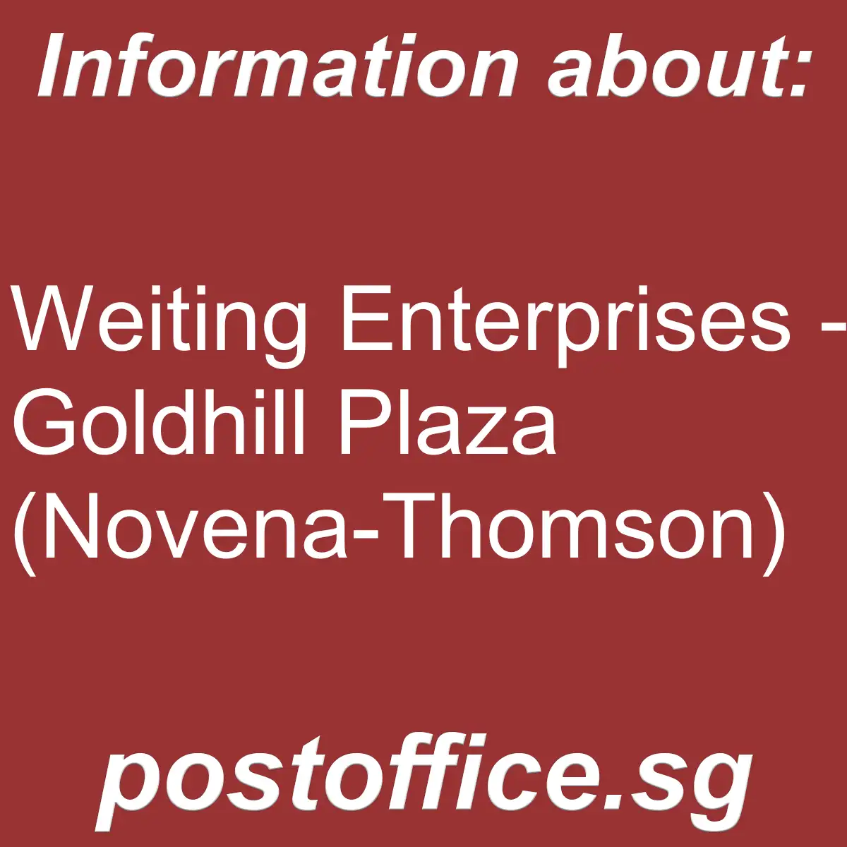 Weiting Enterprises – Goldhill Plaza Novena-Thomson- here are the opening hours and other main details of the Singapore Post Office branch Weiting Enterprises – Goldhill Plaza Novena-Thomson.